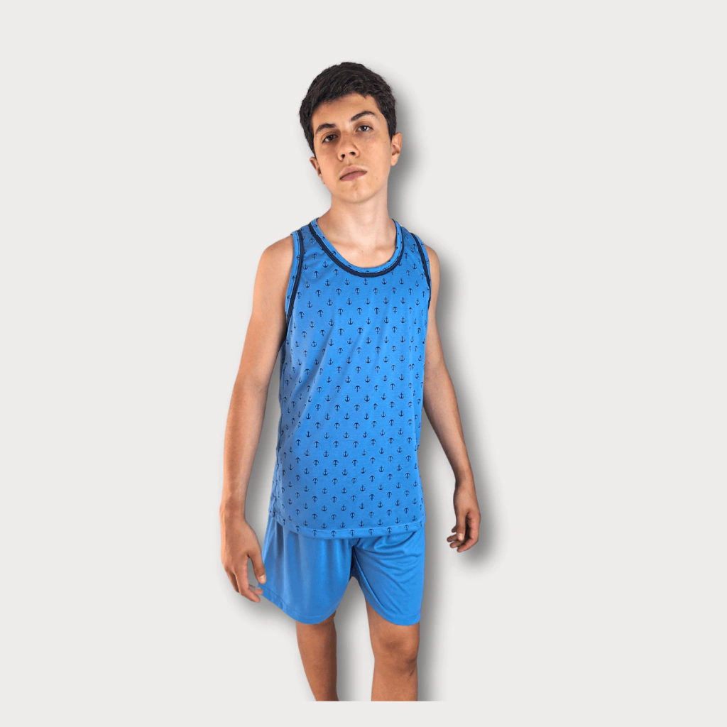 Pijama masculino com camiseta regata e short, tecido leve e confortável, não amassa!